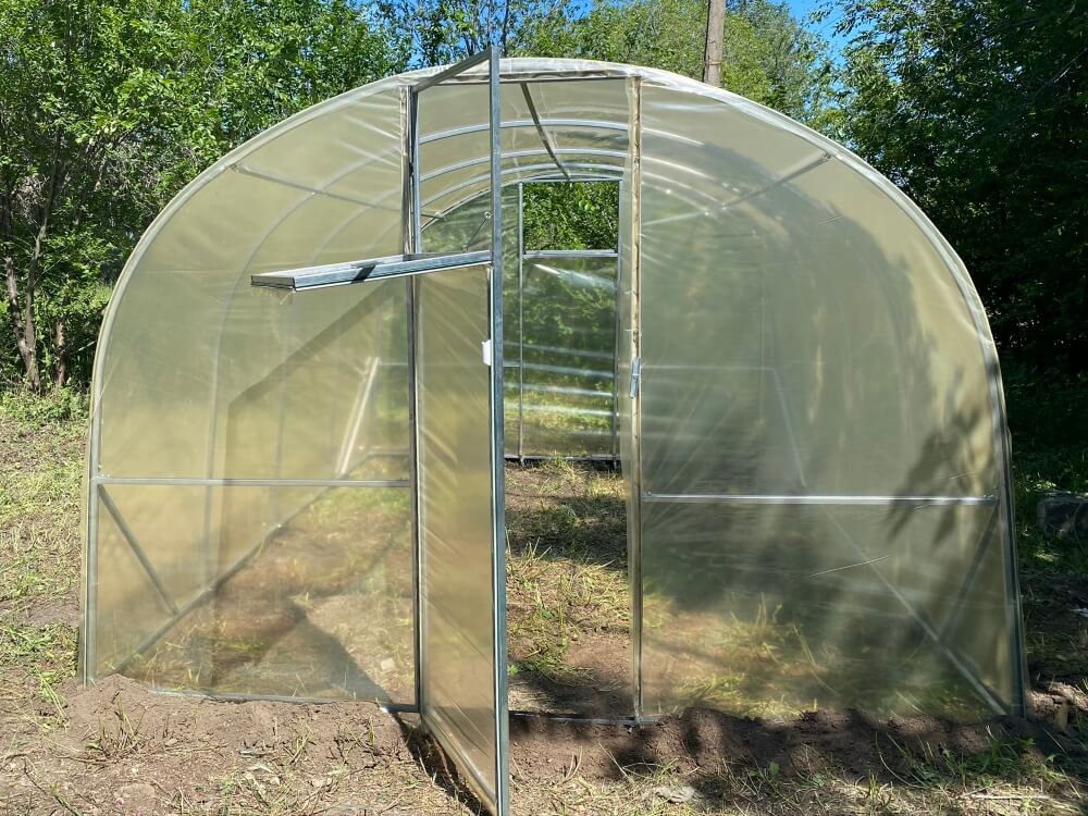 Одні двері з кватиркою на одній стороні теплиці і кватирка на другій стороні (другі двері можна замовити опціонально)