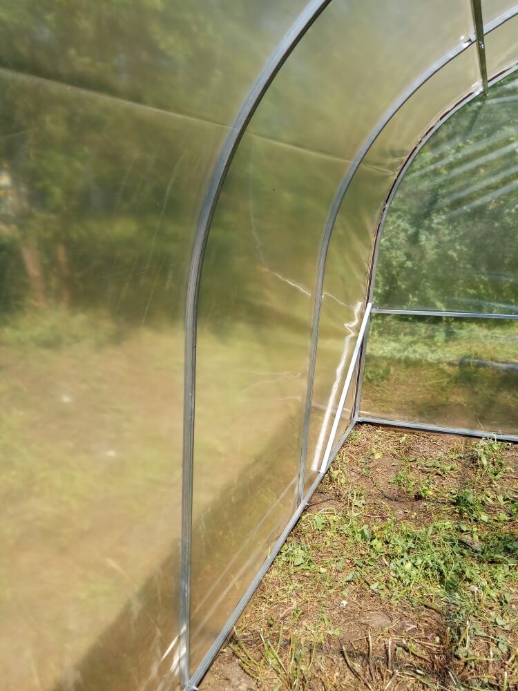 У стандартній комплектації теплиці плівка кріпиться до каркаса притискними планками. У розширеній комплектації (+ 1 750 грн) для кріплення плівки використовується зигзаг-профіль.